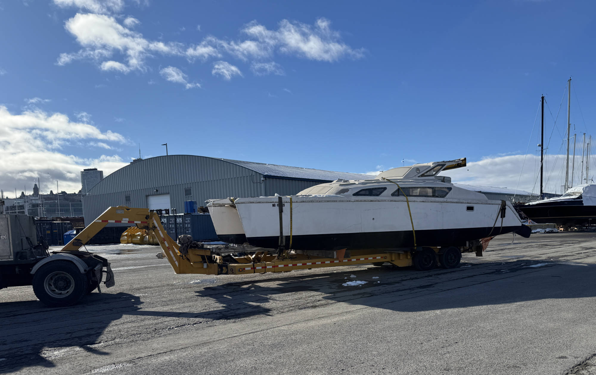 Transport de voiliers et d’embarcations partout au Canada sur remorque hydraulique spécialisée, pour un chargement sécuritaire et efficace.
